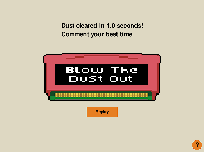 You discovered an old abandoned gaming cartridge! But it's covered in dust and won't work until you clean it. Blow all the dust off as fast as you can.